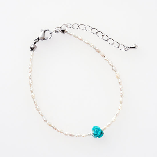 Bracelet Turquoise rose carving, poppy freshwater pearl